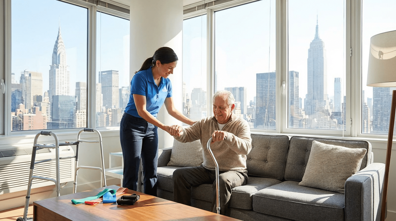 NYC apartments present unique challenges for stroke rehabilitation. Narrow spaces, stairs, and small bathrooms require creative solutions. Our nurses evaluate equipment needs like grab bars, shower chairs, raised toilet seats, and walkers to improve mobility and safety.